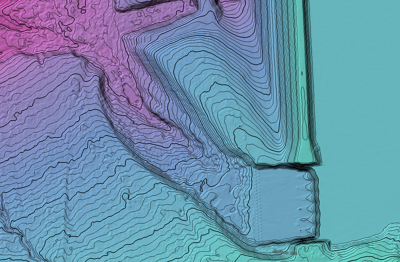 Lidar scanning highlights features not readily seen from traditional aerial mapping. Features like tributaries, paths, and structural issues can be visualized and measured to aid with infrastructure management.